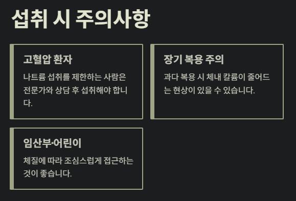 지나치게 섭취하면 혈압 상승이나 부종이 생길 수 있으니 주의가 필요합니다.