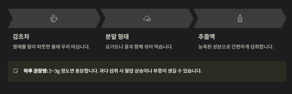 - 추출액: 농축된 성분으로 간편하게 섭취 가능