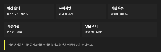 이런 음식들은 나쁜 콜레스테롤 수치를 높이고 혈관을 더 좁게 만들 수 있어요.