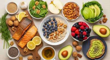 A. 고등어, 연어 같은 등푸른 생선과 귀리, 보리 같은 통곡물, 아몬드·호두 등의 견과류, 두부나 콩 같은 식물성 단백질이 풍부한 식품이 도움이 됩니다.