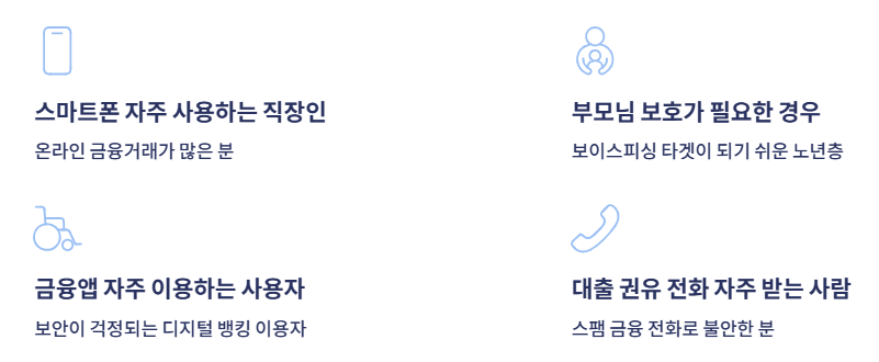 | 보안 강화 | 모든 신규 금융거래 차단으로 보이스피싱 예방 |