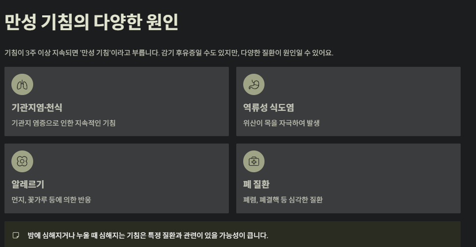 특히 밤에 심해지거나, 누울 때 심해지는 기침은 특정 질환과 관련이 있을 가능성이 큽니다.