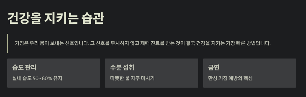 그리고 무엇보다 습도와 수분 관리, 금연은 만성 기침을 줄이는 핵심 습관이란 점도 다시금 느꼈어요.