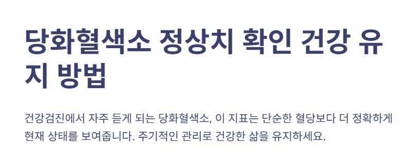 요즘 건강검진에서 자주 듣게 되는 수치 중 하나가 당화혈색소입니다. 이 지표는 단순한 혈당 수치보다 더 정확하게 현재 상태를 보여주기 때문에 주기적인 관리가 필요합니다. 오늘은 당화혈색소의 정상 범위와 함께 수치를 안정적으로 유지하는 방법까지 자세히 알아보겠습니다.