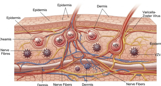 이 바이러스는 한 번 수두를 앓은 후 우리 몸의 신경절에 잠복해 있다가, 면역력이 떨어질 때 다시 활성화되며 생깁니다.