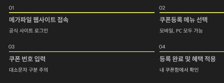 웹하드 서비스를 자주 이용하는 사람이라면 메가파일 무료 다운로드 쿠폰만큼 반가운 게 없을 거예요. 영화나 드라마, 강의 자료를 받을 때 요금이 부담될 때가 많죠. 이럴 때 쿠폰을 잘 활용하면, 유료 결제 없이 원하는 콘텐츠를 합법적으로 받을 수 있습니다. 오늘은 메가파일에서 쿠폰(coupon)을 등록하고 안전하게 사용하는 방법을 알아보겠습니다.