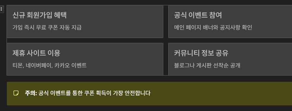 4. 커뮤니티 정보 공유 – 일부 게시판이나 블로그에서 coupon 번호를 선착순 공개하기도 합니다.