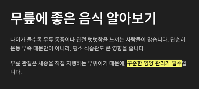 오늘부터라도 무릎을 위해 식습관을 조금만 바꿔보세요. 몸이 확실히 달라질 거예요.