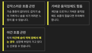 호흡 곤란 숨참, 답답함 휴식 중에도 지속