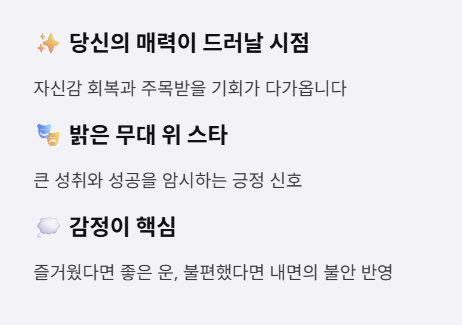 가수나 배우가 등장했다면 예술적 감각, 리더십, 표현력이 뛰어난 아이로 성장할 것이라는 해석이 많습니다.
