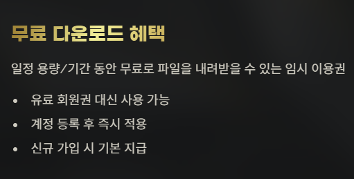 첫 회원가입 후 로그인하면 보통 1GB~2GB의 다운로드 쿠폰이 자동으로 등록됩니다.