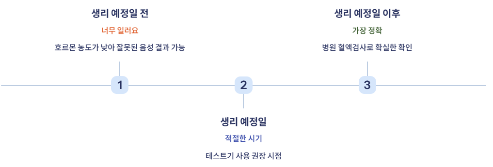 너무 일찍 사용하면 호르몬 농도가 낮아 잘못된 음성 결과가 나올 수 있어요.