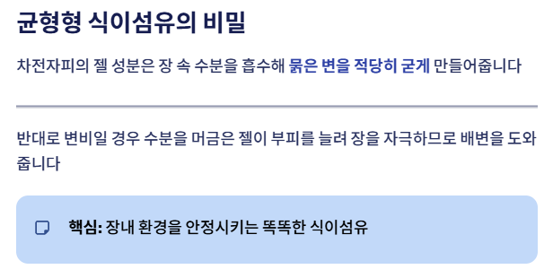 즉, 장내 환경을 안정시키는 균형형 식이섬유라 할 수 있습니다.