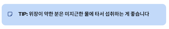 - 물과 함께 섭취하기