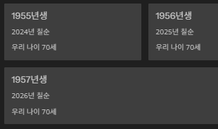 칠순뿐 아니라 고희, 팔순 등도 비슷한 방식으로 계산합니다.