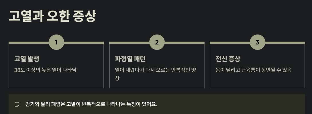 | 전신 증상 | 약간의 피로감 | 심한 무기력, 근육통 |