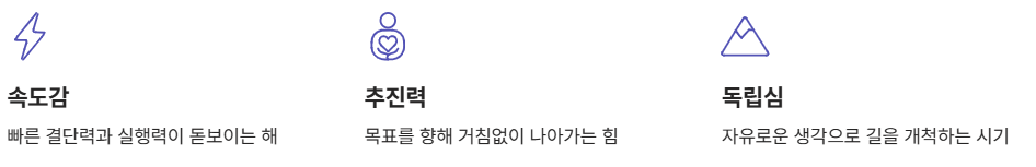| 소 | 안정보다 변화가 필요한 시기 | 새로운 시도를 두려워하지 말 것 |
