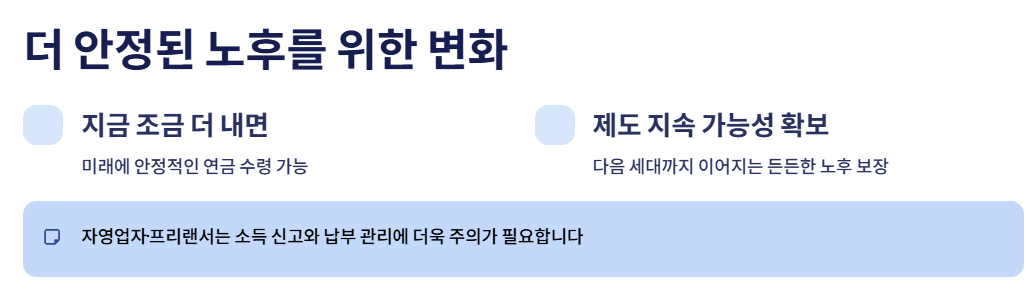 즉, “더 많이 내고, 더 안정적으로 오래 받는 구조”로 전환하려는 것이 핵심입니다.