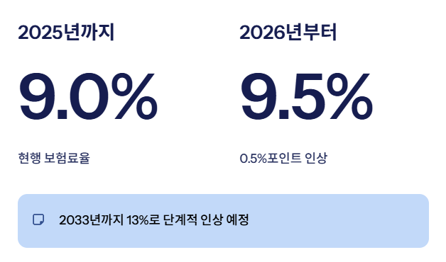 2026년 인상은 1단계 조정이며, 정부는 2033년까지 보험료율을 13%까지 단계적으로 높일 계획입니다.