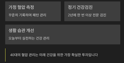 40대는 바쁘다는 이유로 건강을 뒤로 미루기 쉬운 시기입니다. 하지만 하나만 잘 관리해도 나중에 겪게 될 큰 질병들을 미리 예방할 수 있다는 사실이 꽤나 무겁게 다가오네요. 저도 이 글을 정리하면서 집에서 측정기 다시 꺼내게 되었습니다. 작은 습관이 큰 건강을 지킨다는 걸 잊지 마세요.