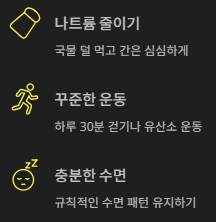 - 짠 음식 줄이기: 나트륨 섭취는 높이는 주요 원인입니다. 국물 줄이고, 간은 심심하게.