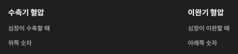 - 이완기(아래의 숫자): 심장이 이완할 때의 압력