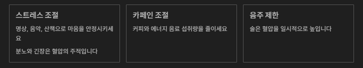 - 카페인·음주 조절: 커피, 에너지 음료, 술은 모두 높일 수 있으니 섭취량을 조절해야 합니다.