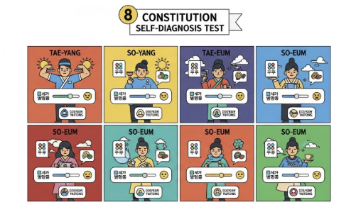 한의학의 사상의학 이론을 확장한 개념으로, 사람을 8가지 체질로 구분하는 건강 접근법입니다. 체질마다 장기 구조, 면역 반응, 소화 기능, 감정 표현까지 다르게 작용한다는 점이 특징입니다.